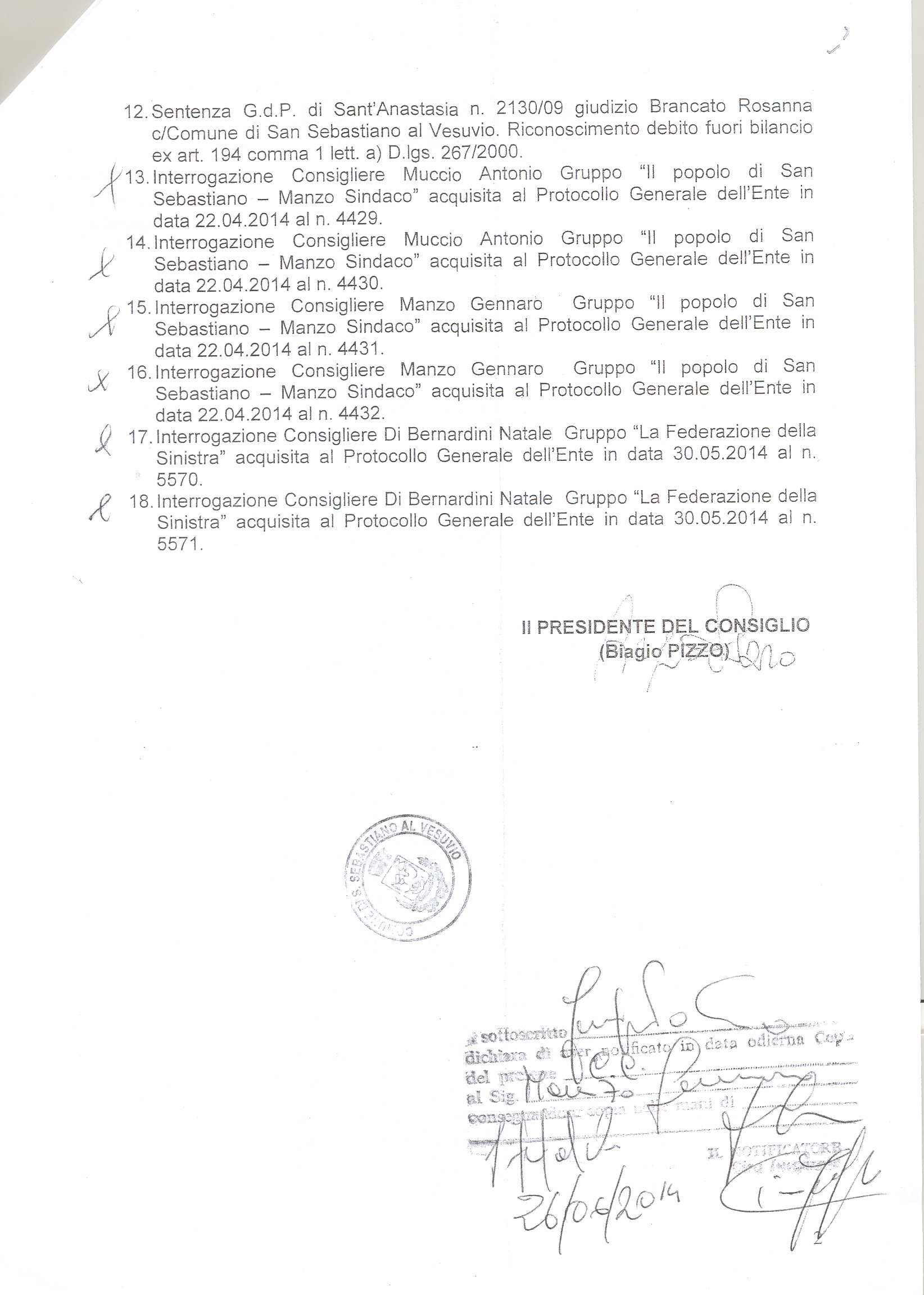 San Sebastiano al Vesuvio – Convocazione alla seduta del Consiglio Comunale per il giorno 01.07.2014 alle ore 09,00. Tutti i cittadini sono invitati a partecipare.