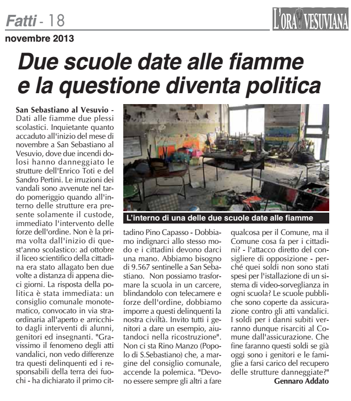 San Sebastiano al Vesuvio , Due scuole date alle fiamme e la questione diventa politica.
