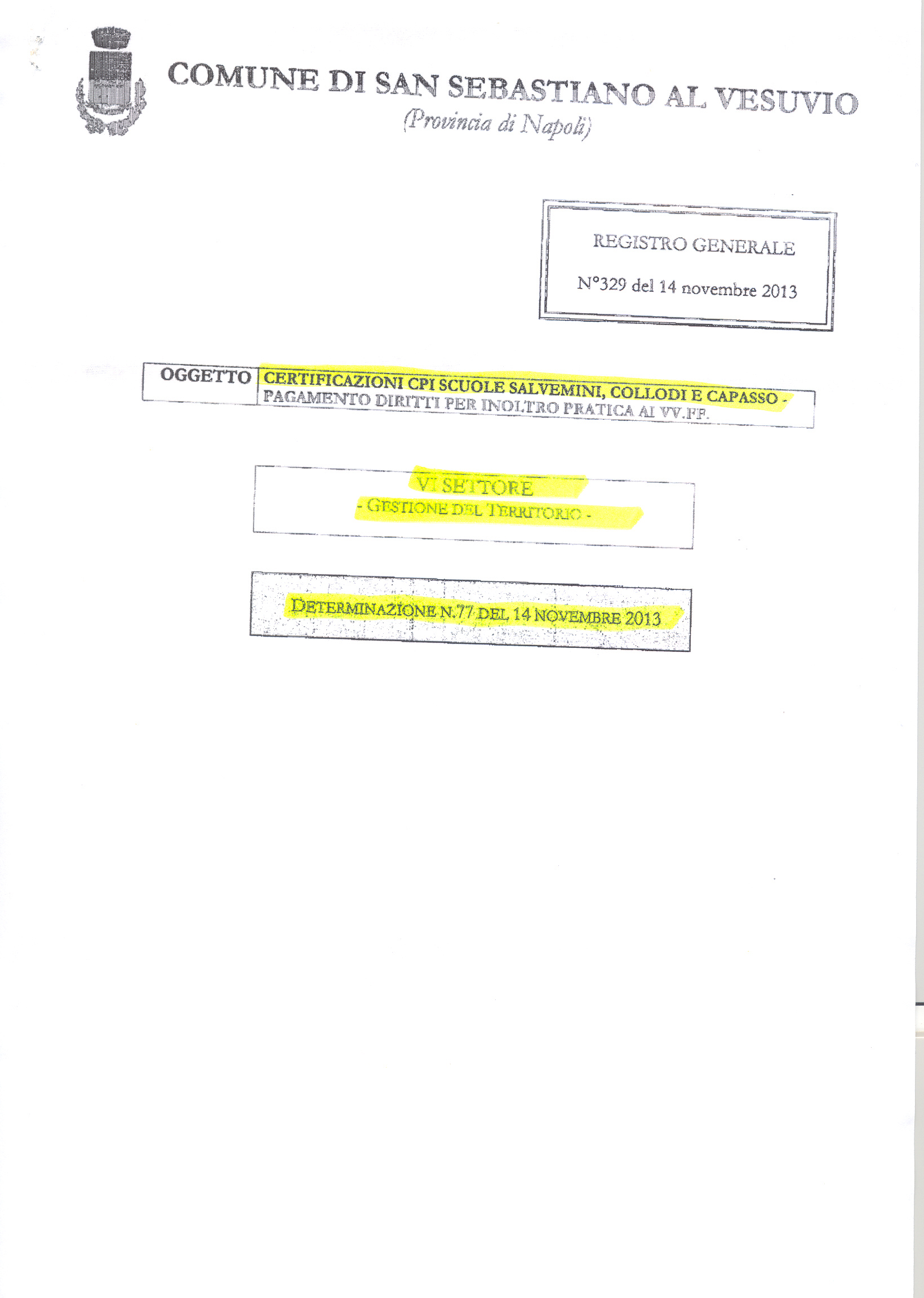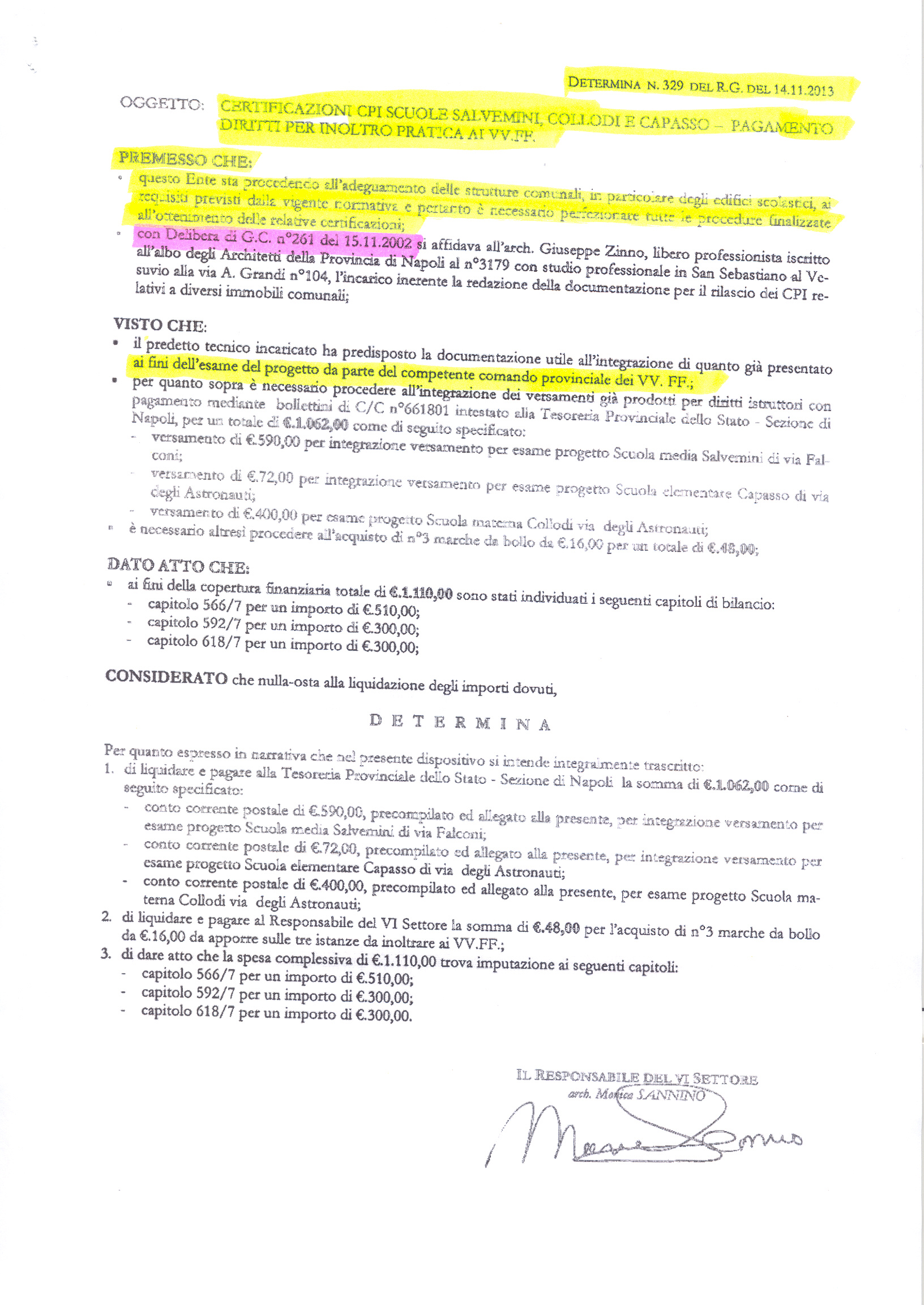 Leggete la determina del 14.11.2013 emessa a firma della responsabile dell’ufficio tecnico comunale, Arch. Monica Sannino, con la quale si cerca di regolarizzare lo stato in cui versano le scuole e gli immobili pubblici! < Cliccate il tasto LEGGI TUTTO >