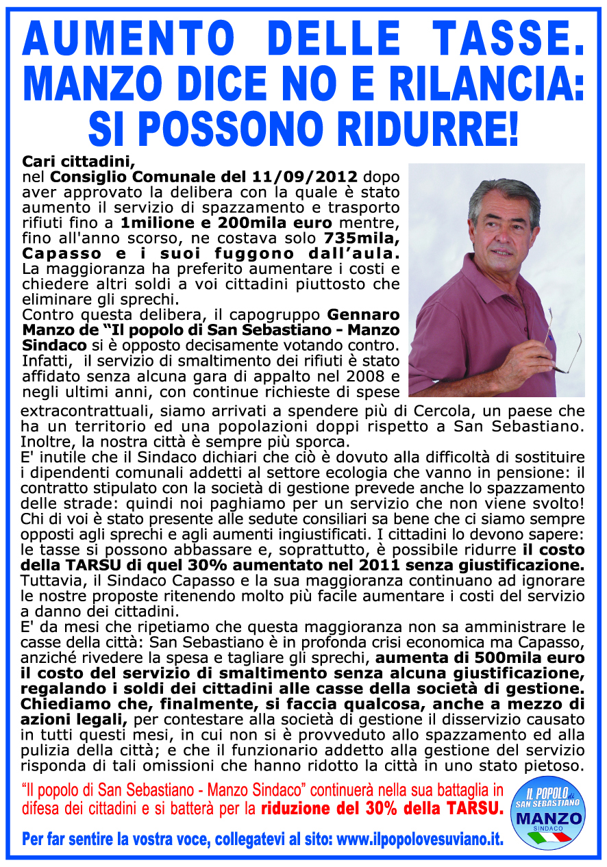 AUMENTO DELLE TASSE . MANZO DICE NO E RILANCIA: SI POSSONO RIDURRE !