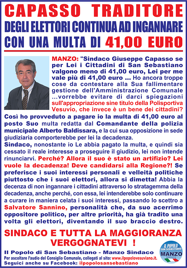 Capasso TRADITORE degli elettori continua ad ingannare con una multa di 41.00 euro