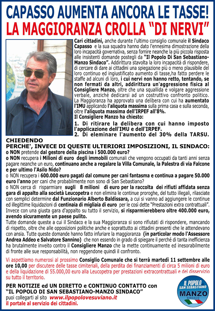 Iniziativa del consigliere Manzo atta ad invitare il maggior numero di cittadini a presenziare al Consiglio Comunale del Comune di San Sebastiano al vesuvio che si terrà Martedi 11 Settembre 2012 ore 10,00.